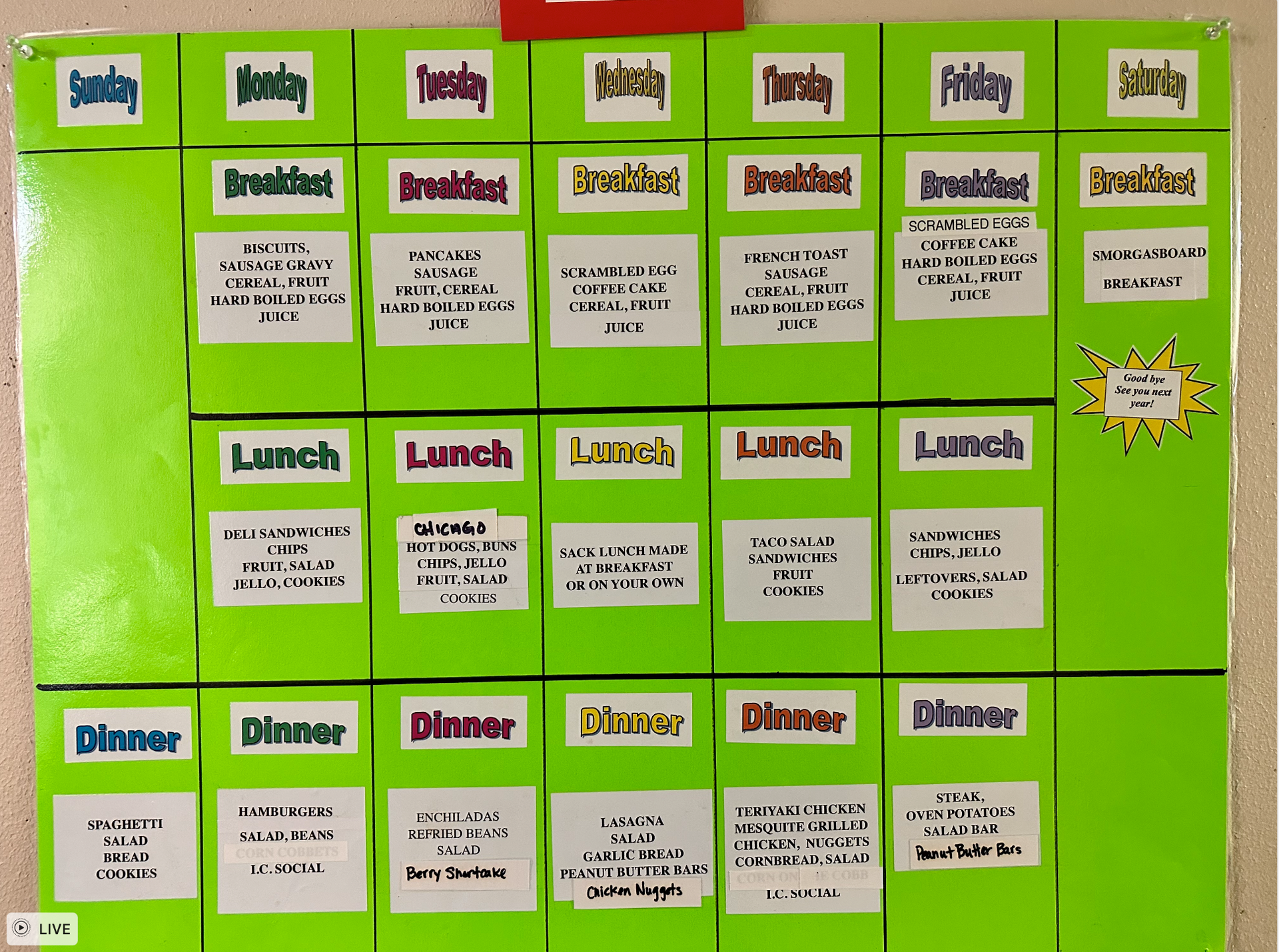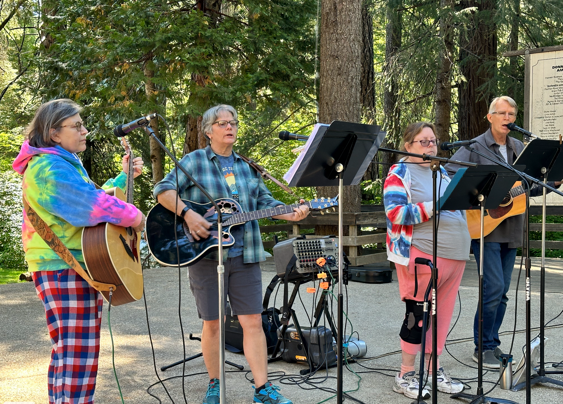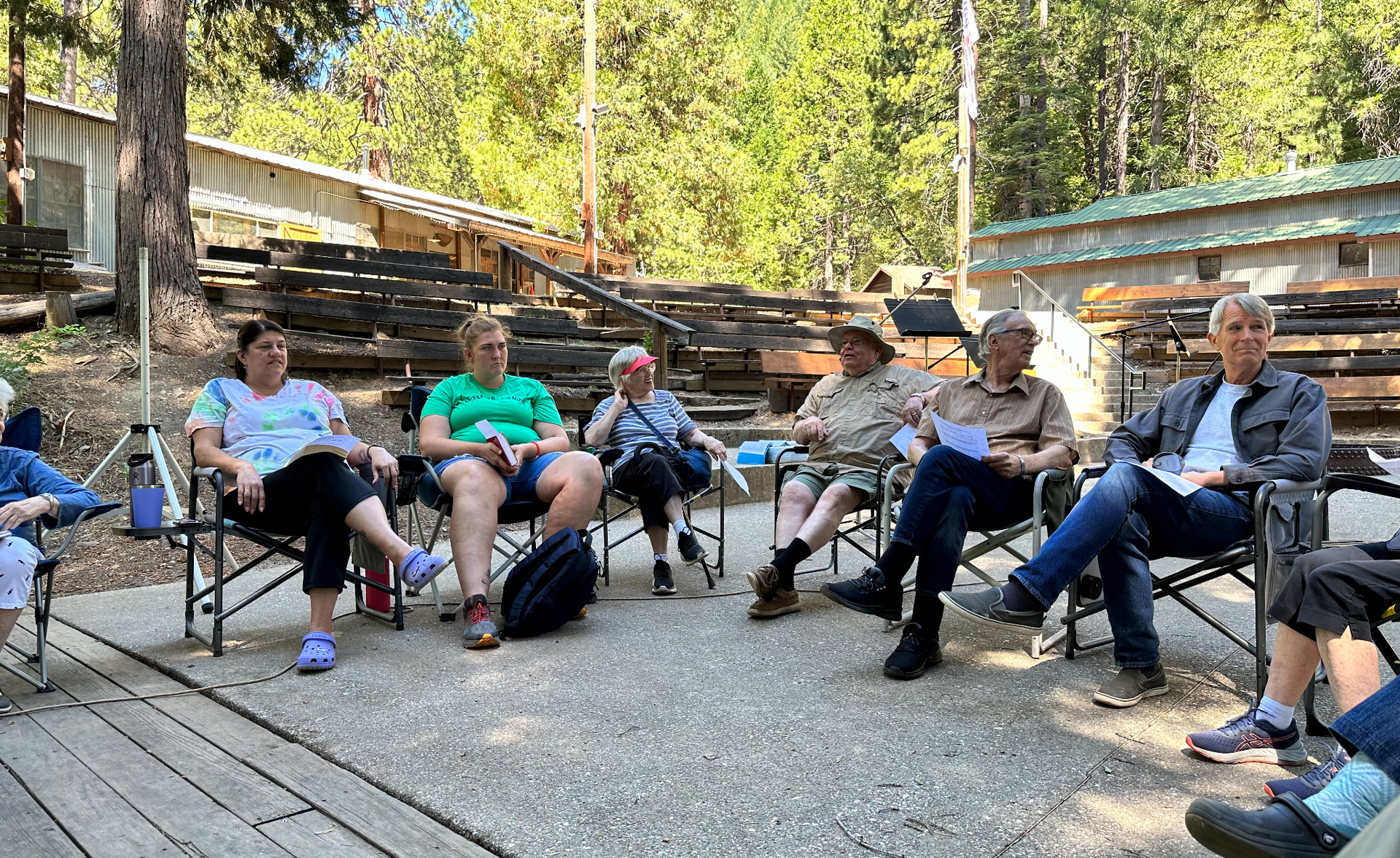 The camp has spaces for tents, RVs, and trailers. There are also several small rooms and barracks-style bunks in the rustic lodge. Meals are prepared communally with each person taking turns preparing or cleaning after meals. Camp activities include faith-based activities in the morning for adults, teenagers, and children. Afternoons have less-structured activities, such as trips to the Emerald Pools swimming hole and other attractions around Truckee.